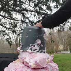 "Not in my face... this is so humiliating" she says. However she takes another pie to the face. The pies keep on coming however.