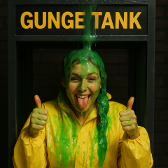 She stands up, bra comes off, sexy twirl, sits down, and says she's glad that's over with... at that moment the second gunging hits her. "Same again next season?" she laughs, before getting out of the tank, blowing you a kiss, and then sitting bare-arsed in a cake to conclude the final part of her forfeit for losing the bet.