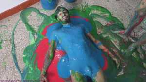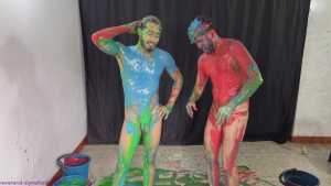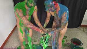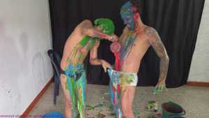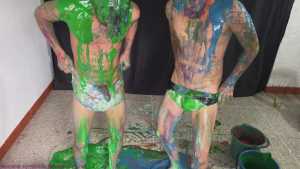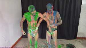 Rafa and Bernard are now stripped to their underwear. Speedos vs Hanes briefs. There's plenty more slime pouring, but loads more erotic fun too. The boys erotically rub the front of each other's underwear over their dicks... then they decide it would be hot to swap the warm underwear, so Rafa wears Bernard's, and Bernard wears Rafa's. Then the boys get naked and play around in fresh slime, and all the recycled slops too. It's wild and crazy fun from these 2 great friends.