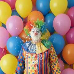 Amylith44 was surprised by Big Bird the Clown with a big sloppy cream pie to the face